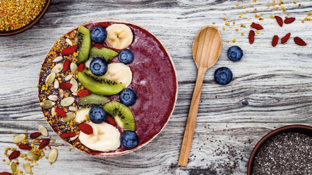 O açaí é uma fruta do tipo baga roxa, quase preta, de origem amazônica que se tornou muito popular em todo o mundo por ser um produto exótico, inovador, com propriedades nutricionais benéficas à saúde e com inúmeras formas de consumo. Na hora de comprá-lo podemos encontrá-lo em pó ou em polpa congelada. Com este produto são preparadas as famosas tigelas de açaí, que são compostas por um purê congelado preparado com uma mistura de açaí, fruta congelada e leite, iogurte ou bebida vegetal e que se completa com a adição de vários ingredientes como nozes, nozes picadas fruta, coco ralado, sementes ou granola.